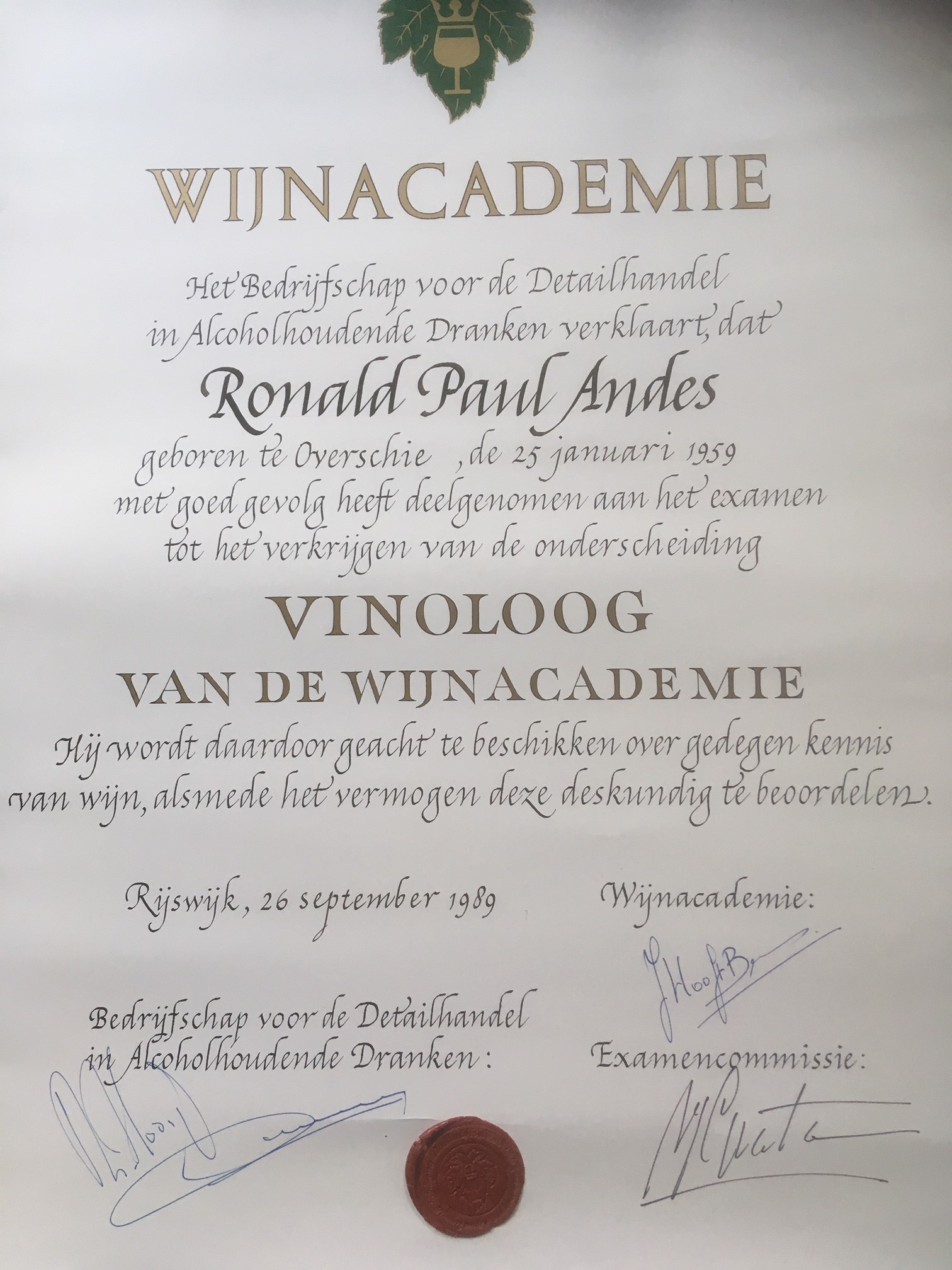 Gecertificeerd als Taxateur/makelaar in Wijn & Gedistilleerd